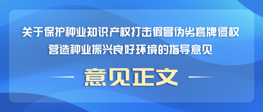 Guiding opinions on protecting the IPR of seed industry, cracking down on the infringement of counterfeit and shoddy produce, creating a good environment for the revitalization of seed industry