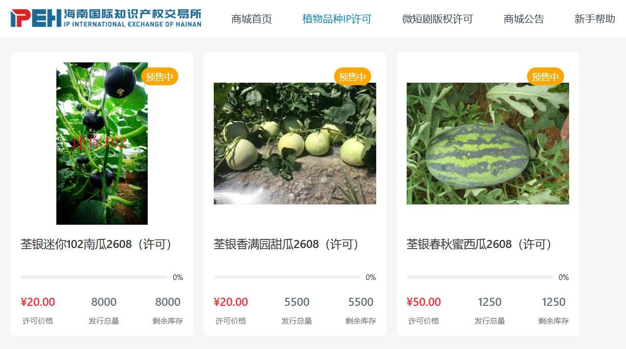 8月28日,海南國(guó)際知識(shí)產(chǎn)權(quán)交易所(簡(jiǎn)稱(chēng)“海知所”)電商平臺(tái)植物品種IP許可交易專(zhuān)區(qū)上線(xiàn)試運(yùn)營(yíng),首批掛牌“荃銀迷你102南瓜”“荃銀香滿(mǎn)園甜瓜2608”“荃銀春秋蜜西瓜2608”3項(xiàng)優(yōu)質(zhì)品種。當(dāng)日,東昌農(nóng)場(chǎng)一種植戶(hù)購(gòu)…