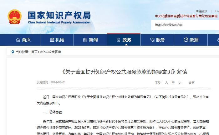 《關(guān)于全面提升知識(shí)產(chǎn)權(quán)公共服務(wù)效能的指導(dǎo)意見》解讀近日,國(guó)家知識(shí)產(chǎn)權(quán)局印發(fā)《關(guān)于全面提升知識(shí)產(chǎn)權(quán)公共服務(wù)效能的指導(dǎo)意見》(以下簡(jiǎn)稱《指導(dǎo)意見》),現(xiàn)將文件有關(guān)內(nèi)容解讀如下。一、總體思路近年來(lái),國(guó)家知識(shí)…